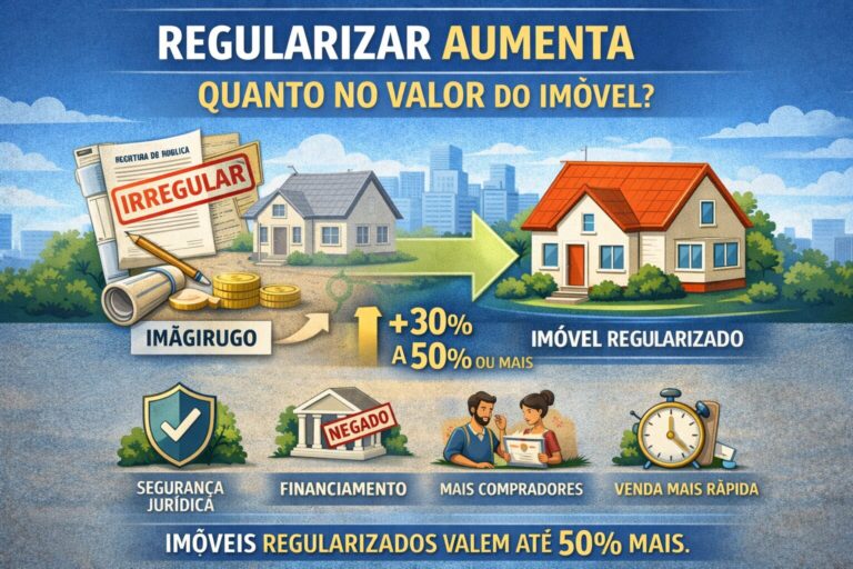 Isso acontece porque a regularização amplia o público comprador e reduz o risco jurídico.